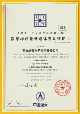 GJB9001B國(guó)軍標(biāo)質(zhì)量管理體系認(rèn)證證書