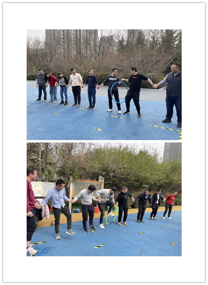 大家團(tuán)結(jié)協(xié)作,互相加油打氣,即要迅速的穿越呼啦圈,又要掌握技巧爭取在最短的時間完成比賽。